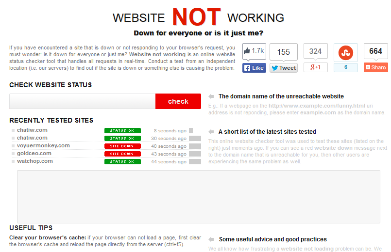 La página web http://www.websitenotworking.com verifica la conexión a dicha url y te indica si está caída la página.